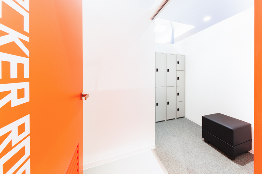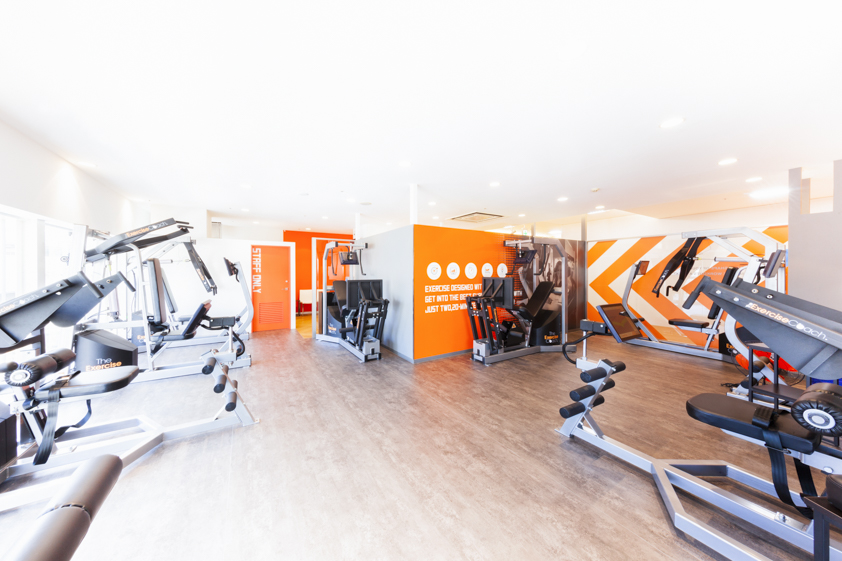 パキっとしたオレンジとクリーンな白がトレーニングのやる気を引き出させてくれるようなデザインです。