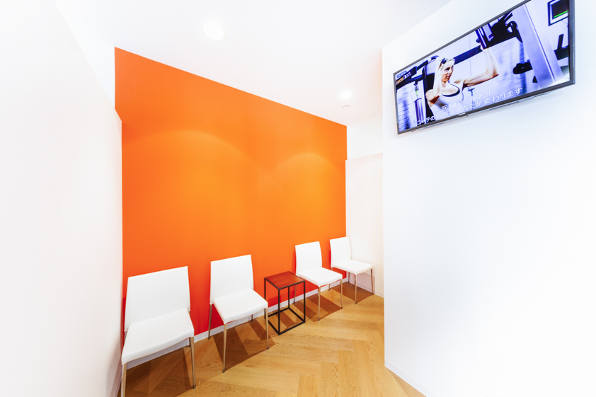 オレンジと白を基調とした、明るく清潔感のある内装に。